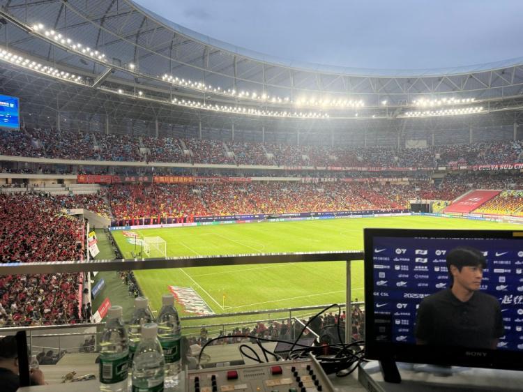 黄健翔在个人微博写道:成都蓉城x上海海港。第一次来凤凰山体育场解说。第N次来成都解说比赛。解说席放在这个位置的球场,个人还是第一次遇到,视野倒是不错,体验很独特。球场很漂亮!